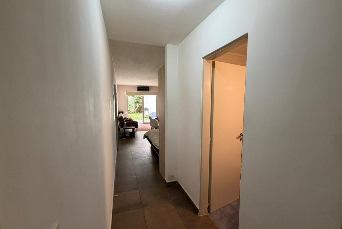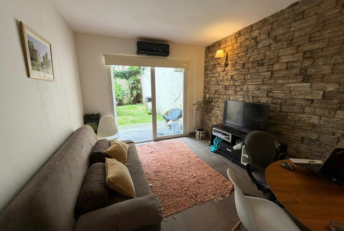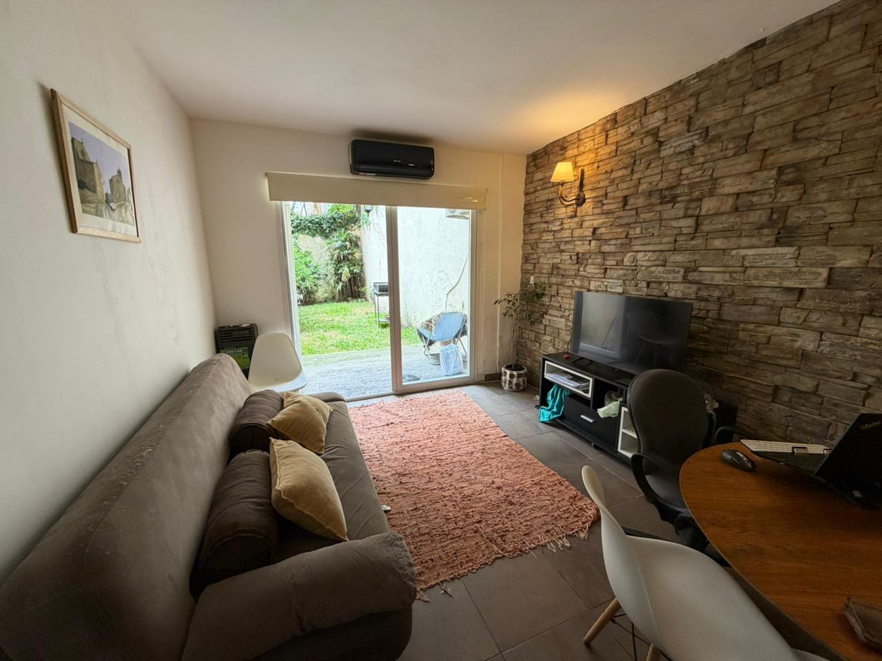 – Living-comedor con sillon, mesa con sus 4 sillas, aire acondicionado, rack con tv LED y cama plegable. Cocina completa con lavadero. Vestidor. Es planta baja y muy luminoso.