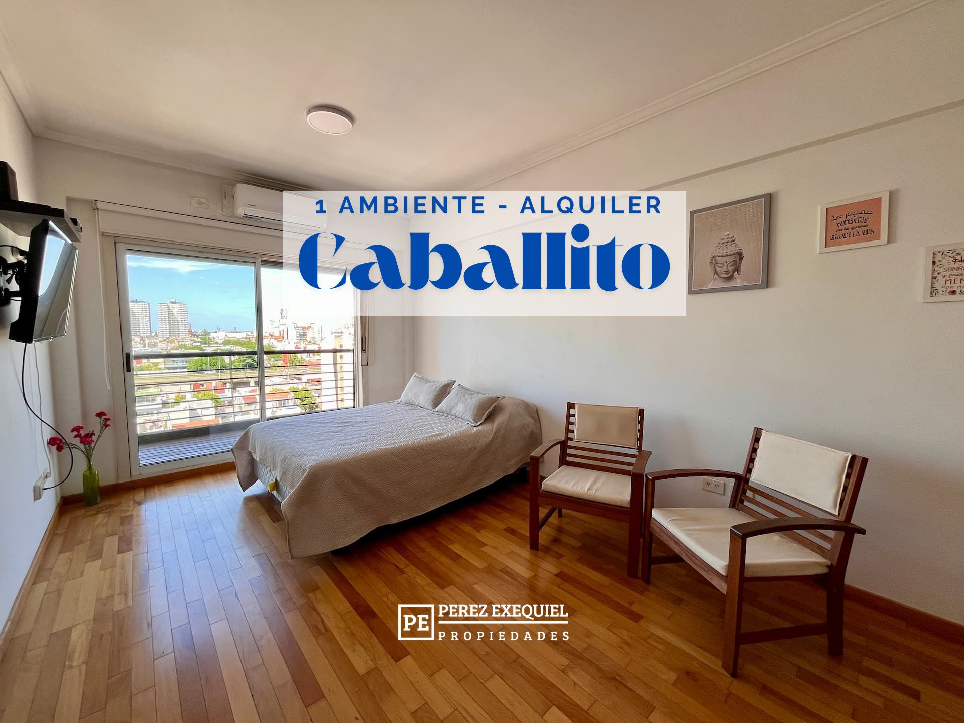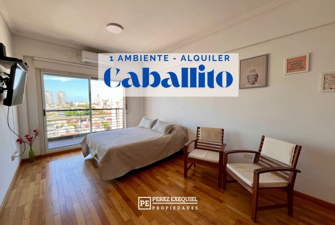 Monoambiente con balcon y vista amplia en Caballito, en edificio con vigilancia y piscina.